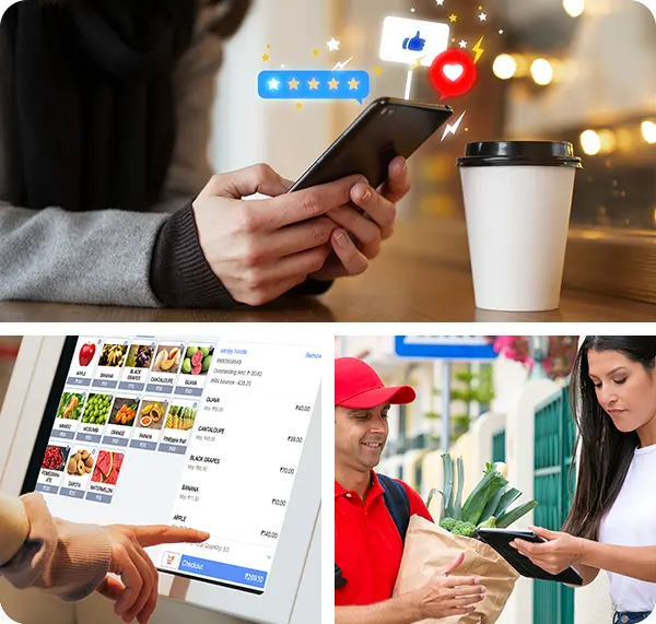• Go omnichannel so your customers can order in all formats from your branded app, online from your website, and at self-checkout counters in your store.