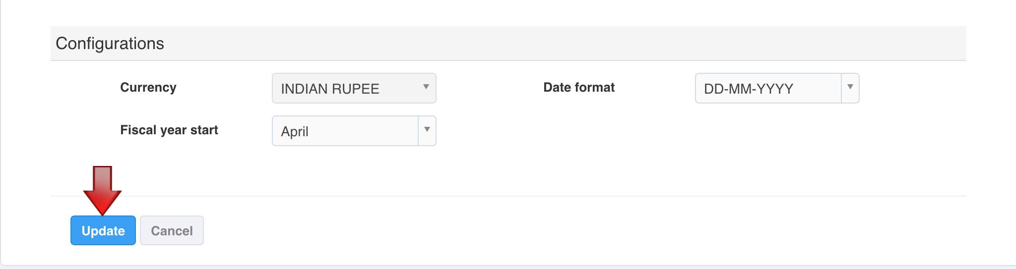 The Company details section, contains fields Company name, Logo, E-mail, Address, Primary contact, City, State, Country, Postal code, Time zone, Phone, Mobile, Tax id, Company idIn the Company name field, enter the company nameIn the Logo field, upload the company logo by selecting UploadIn the E-mail field, enter the e-mail idIn the Address field, enter the address of the companyIn the Primary contact field, enter the contact number of the companyIn the City field, enter the city in which the company residesIn the State field, enter the state in which the company residesIn the Country field, select the country in which the company resides.In the Postal code field, enter the relevant postal code of the companyIn the Time Zone field, select the relevant timezone of your country from the drop down listIn the Phone field, enter the contact phone numberIn the Mobile field, enter the mobile numberIn the Tax id field, enter the tax id number issued for the companyIn the Company id field, enter the registered id of the company