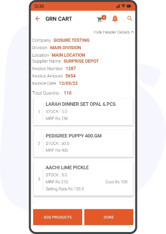 An app like GoSure GRN will help you automate operations and ensure efficiency and accuracy across the procurement process. Challenges in the manual procurement process like the dependency of a supervisor on goods inward can be eliminated at any time, anywhere purchase inwards with auto purchase order reconciliation. GoSure GRN allows you to take control over all the procurement operations from purchase orders to purchase inwards, returns and replenishment.