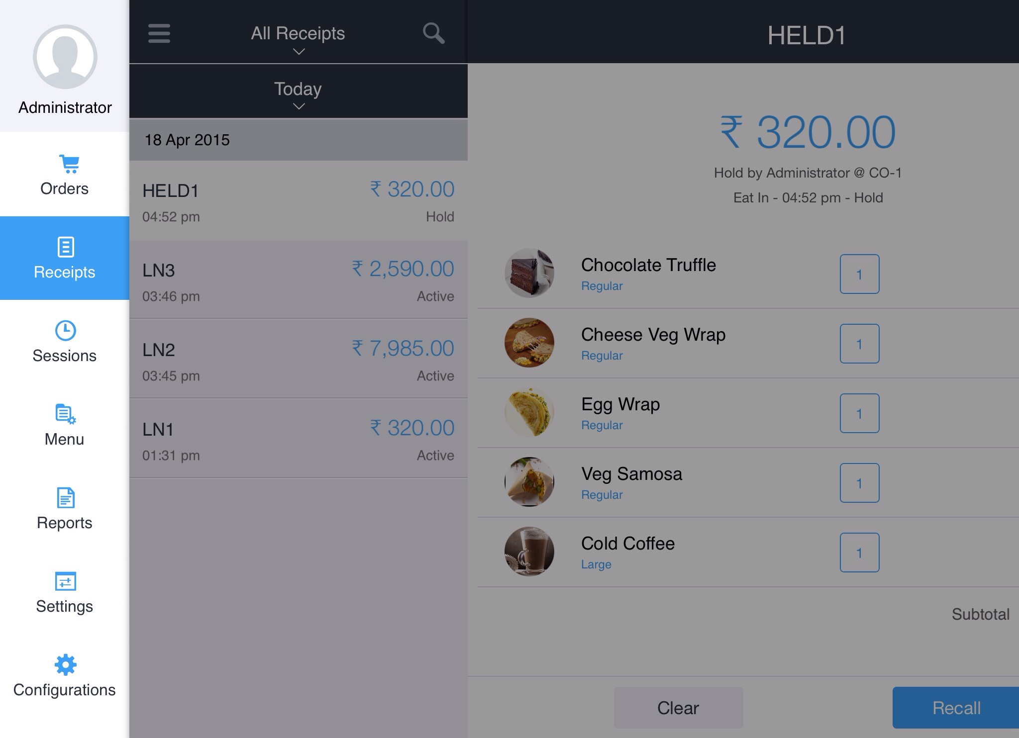 In search box Search receipts, using the order numberToday filter, is used to filter for a particular period/ duration 3. From the list displayed below, select the desired