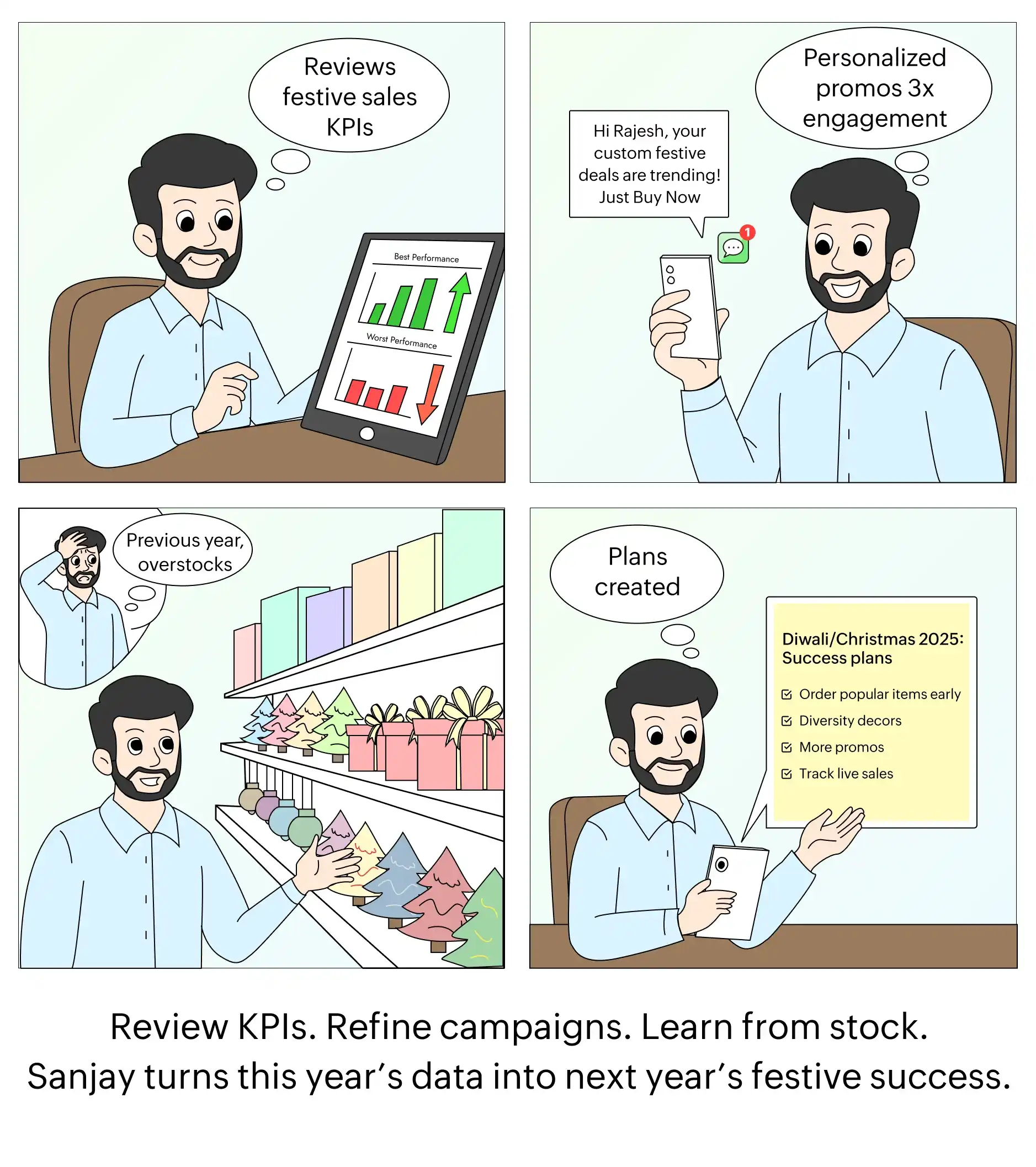 • Learn from post-festival insights to plan smarter for the next Diwali or Christmas.