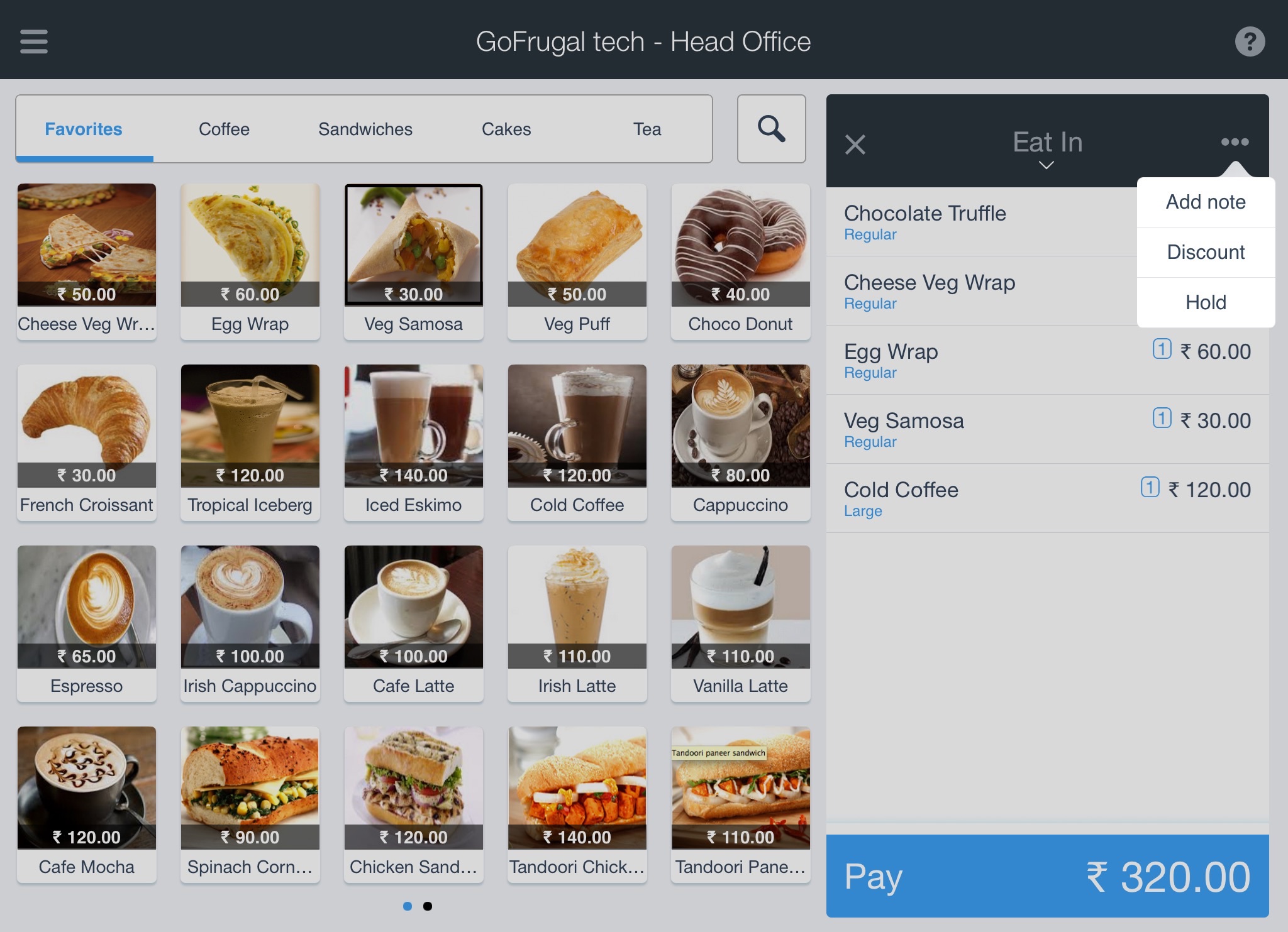 Order screen select ... option available next to the