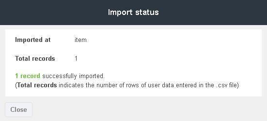 The message box Import status displays as below when the import is done successfully The message box Import status displays as below when an error occurs The error record sheet can be downloaded to understand the nature of the error Note: The same file can be imported after rectifying the errors for a successful import.